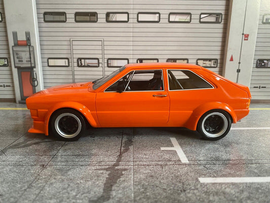 VW Scirocco GT Gr.2 Breitbau Orange mit roter 06er Nummer Tuning Diorama 1:18