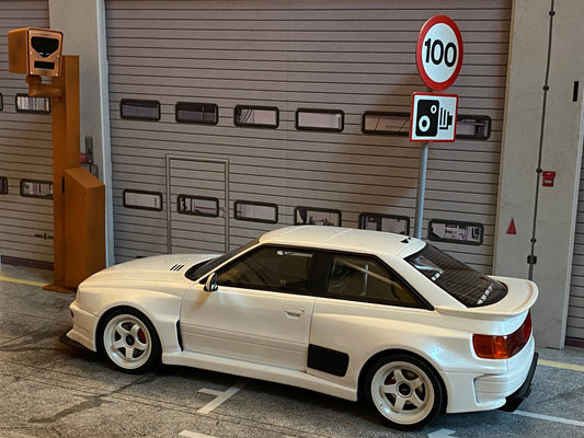 Radarfalle Blitzer Tempo 100 Verkehrsschild Radarkontrolle Metall Diorama Maßstab Neu OVP 1:18