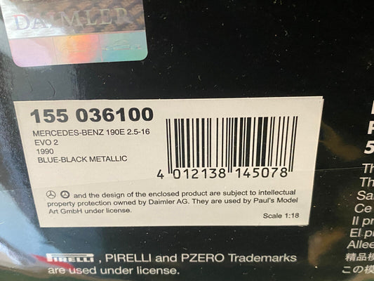 Mercedes Benz 190E 2.5-16V Evo2 Blue Black Minichamps 155036100 Neu OVP 1:18