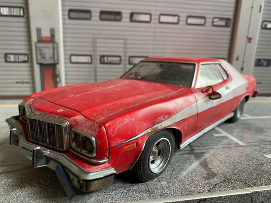 Ford Gran Torino Starsky & Hutch Barn Find Scheunenfund Unfall Diorama 1:18