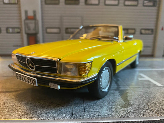 Mercedes Benz 450 SL gelb R107 Umbau auf Euro-Version Einzelstück Code3 (B) 1:18
