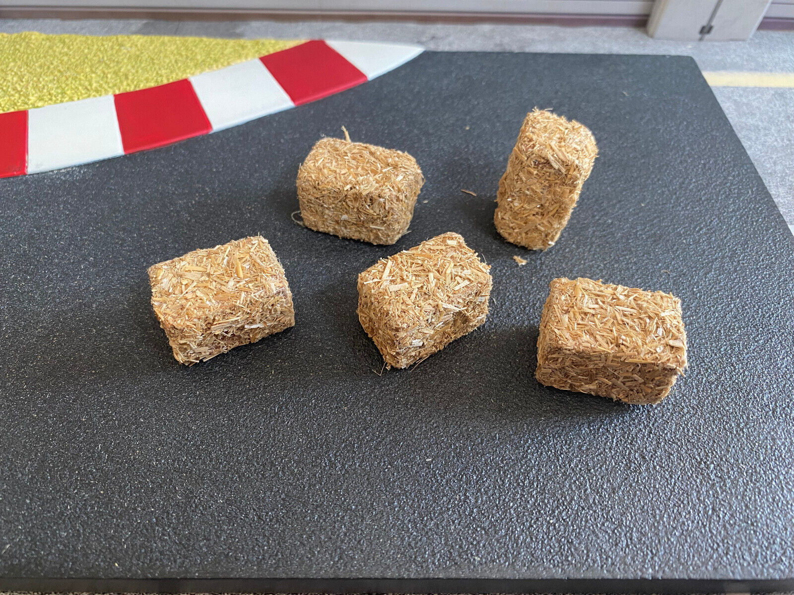 Jeder einzelne Strohballen hat die Maße von ca. 3cm x 2cm x 2cm.
