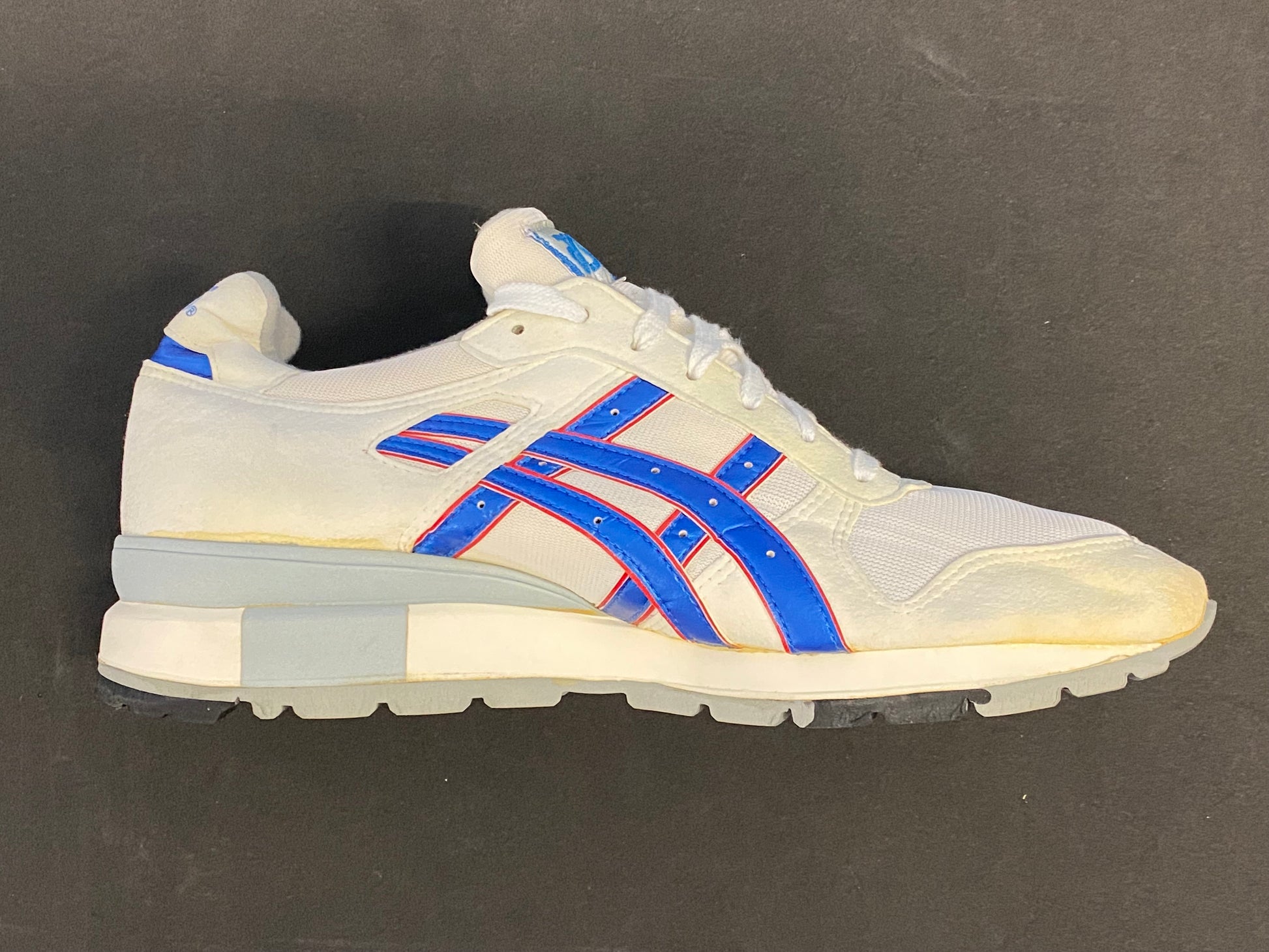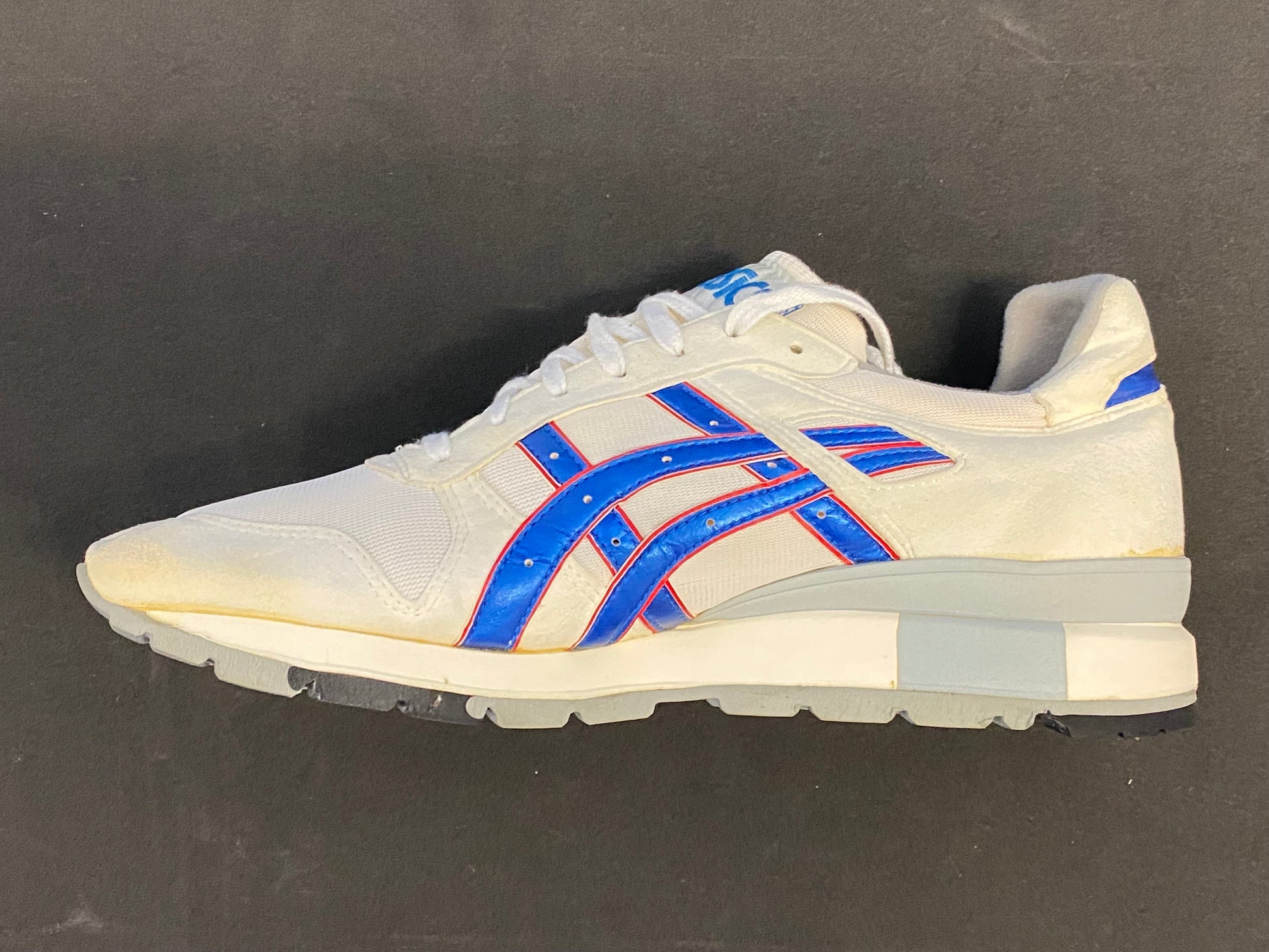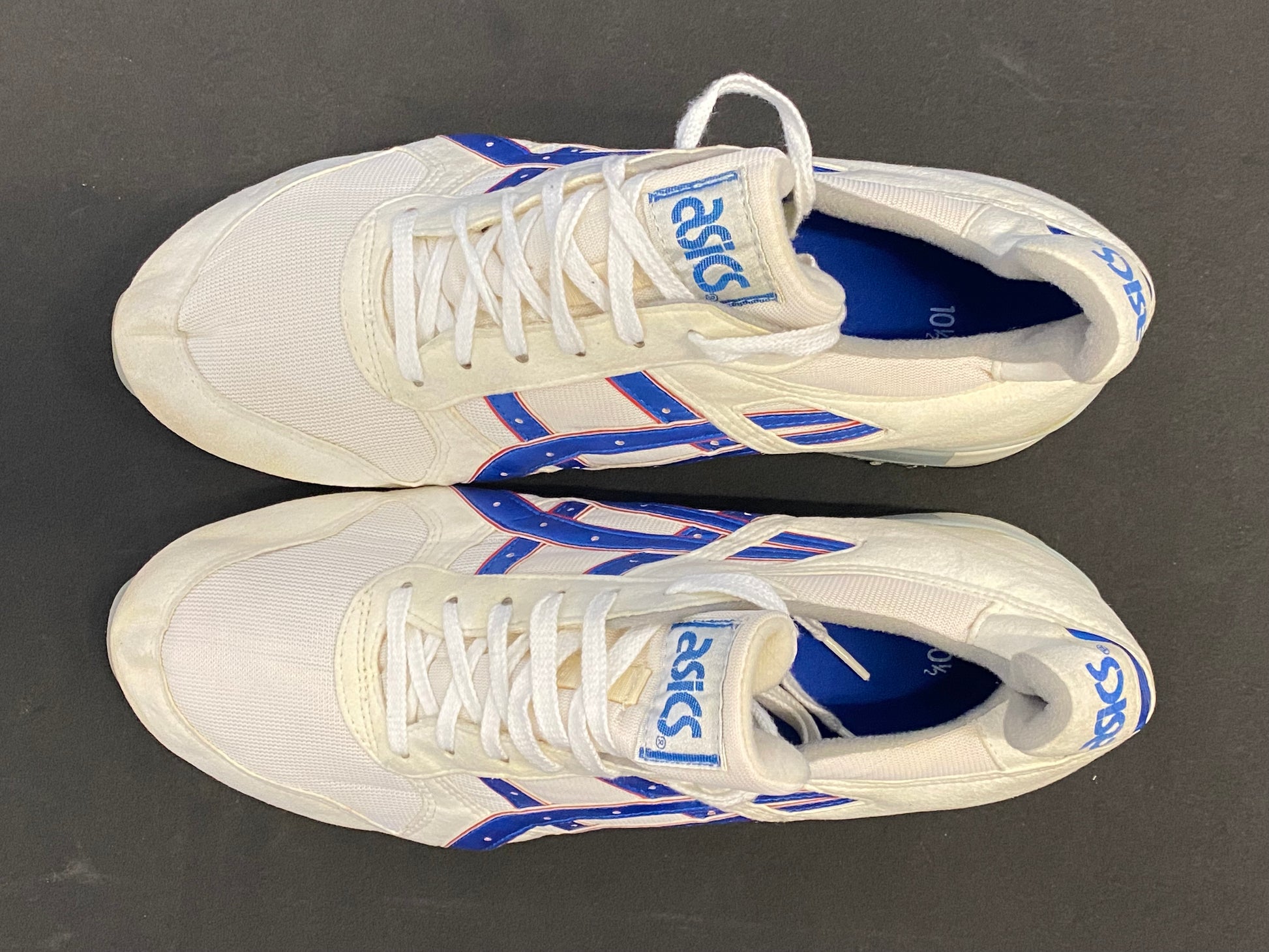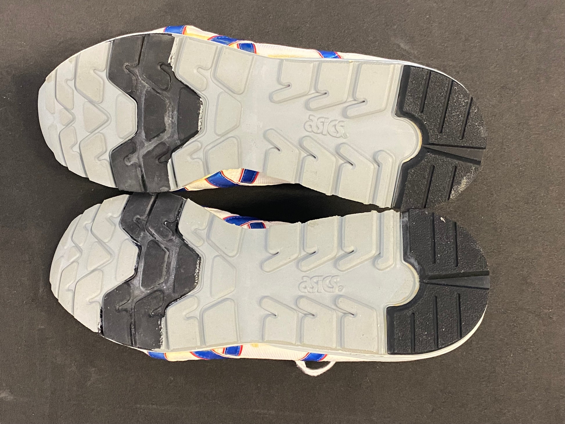 Die Schuhe sind neu, weisen aber Alters- u. Lagerungsspuren auf, wie z.B. vergilbte Klebeflecken, Farbab- u. aufrieb, poröse/brüchige Asics-Streifen etc., da es sich um Vintage-Schuhe aus den 90er Jahren handelt und werden ohne original Box versandt.