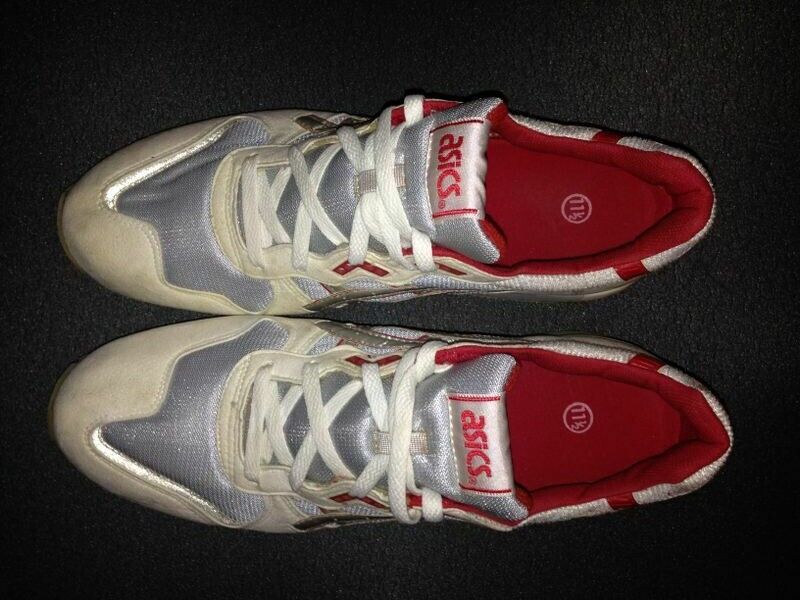 Die Schuhe sind neu, weisen aber Alters- u. Lagerungsspuren auf, wie z.B. vergilbte Klebeflecken, Farbab- u. aufrieb, poröse/brüchige Asics-Streifen etc., da es sich um Vintage-Schuhe aus den 80er Jahren handelt und werden ohne original Box versandt.
