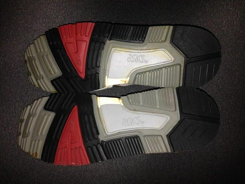 The shoes are new and vintage, so they have many age marks, like yellowed glue stains, storage damages, crackling/crumbling Asics-stripes etc. and they´re comes without original box.