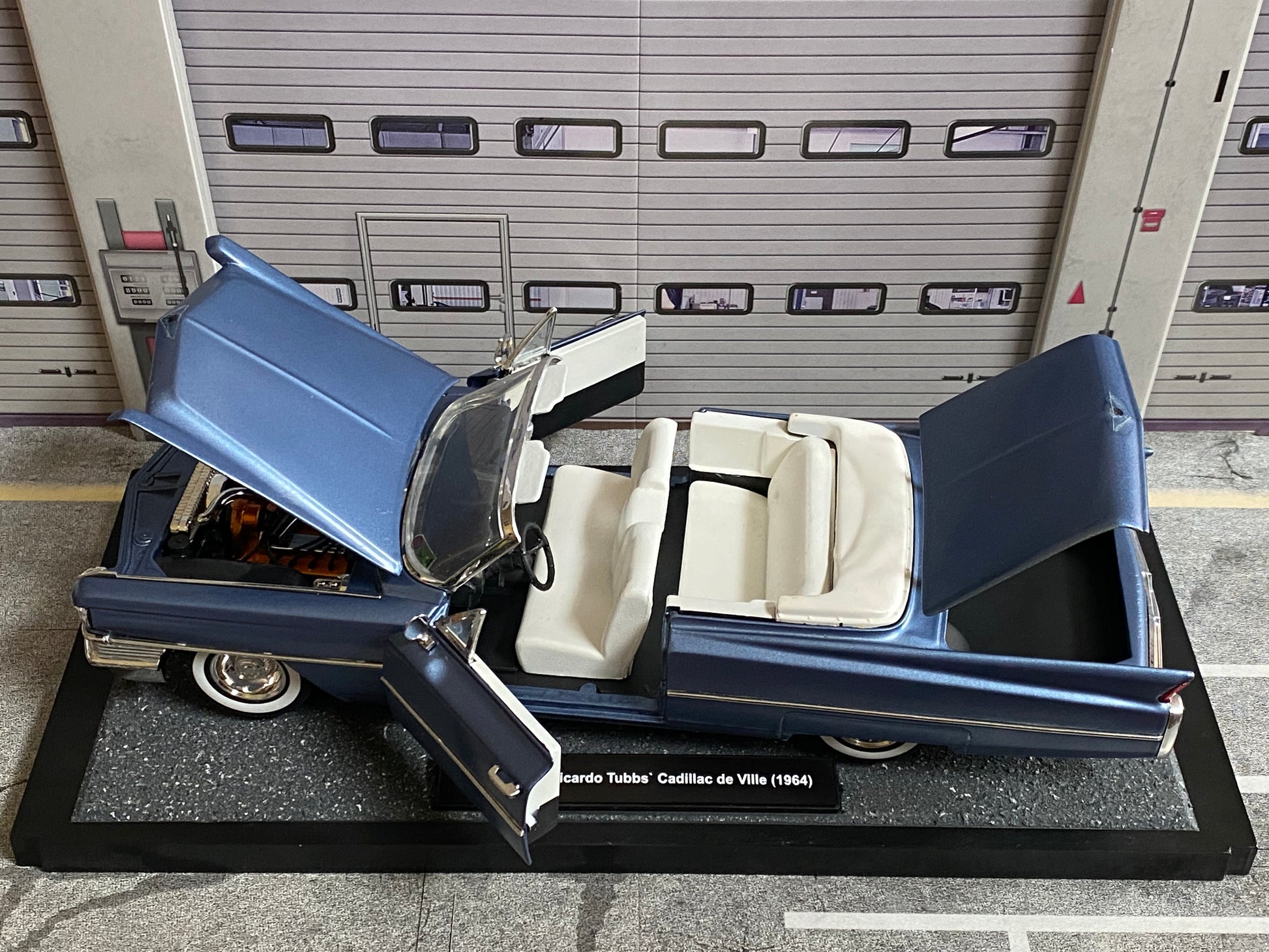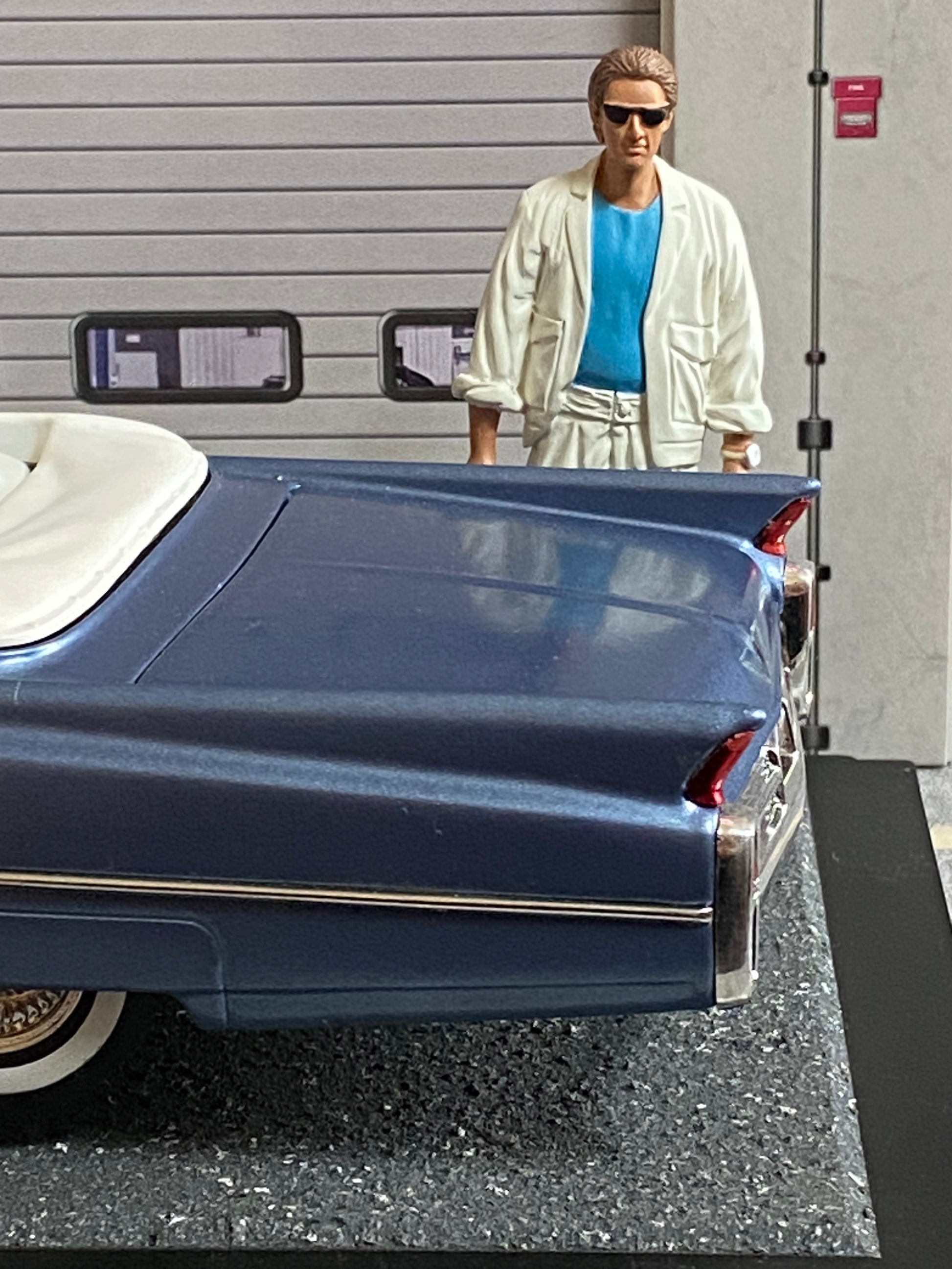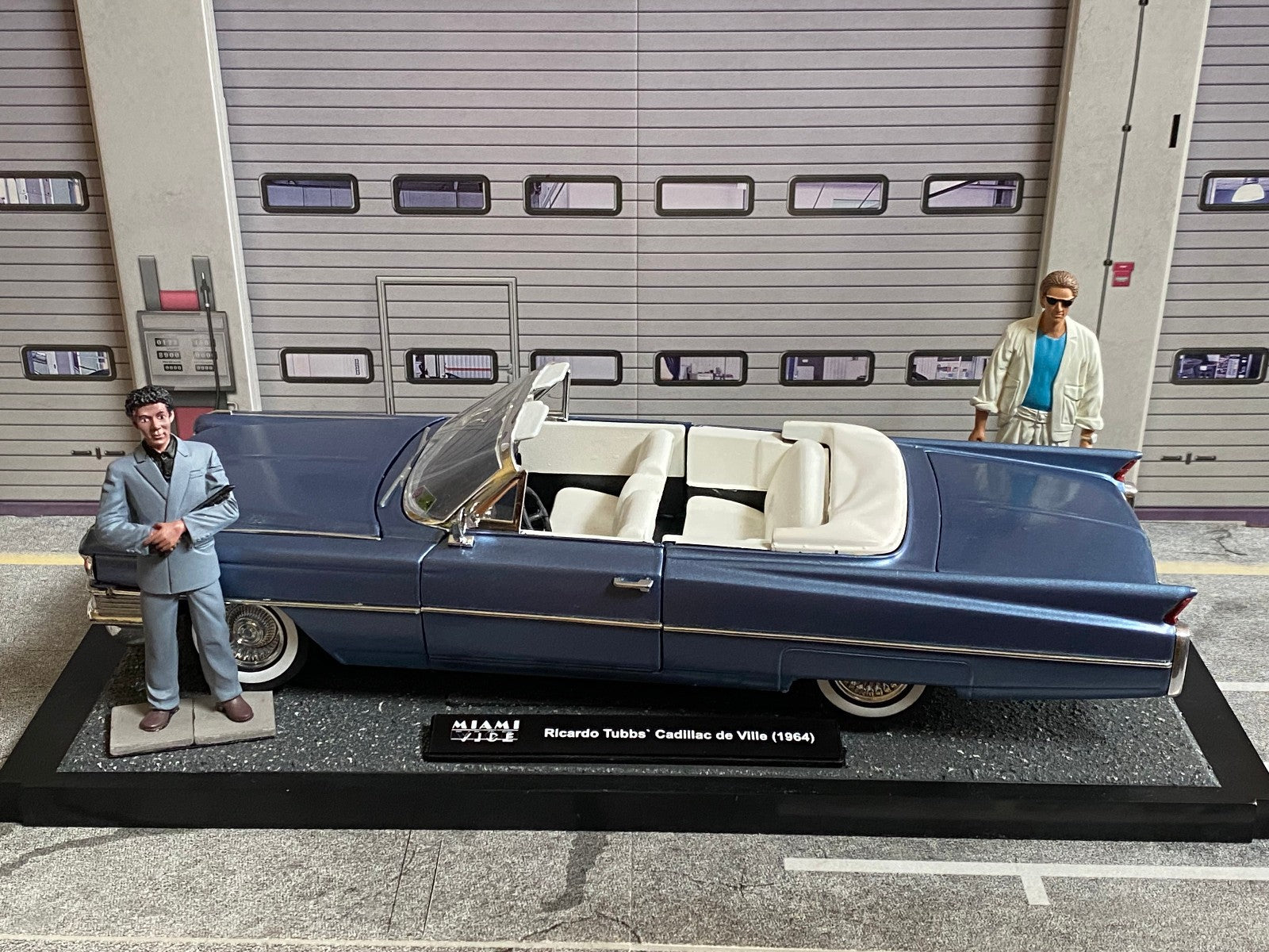 Cadillac de Ville Convertible 1964 mit Figuren "Rico" (Ricardo Tubbs) & "Sonny Burnett" (James Crockett) aus Miami Vice 1:18