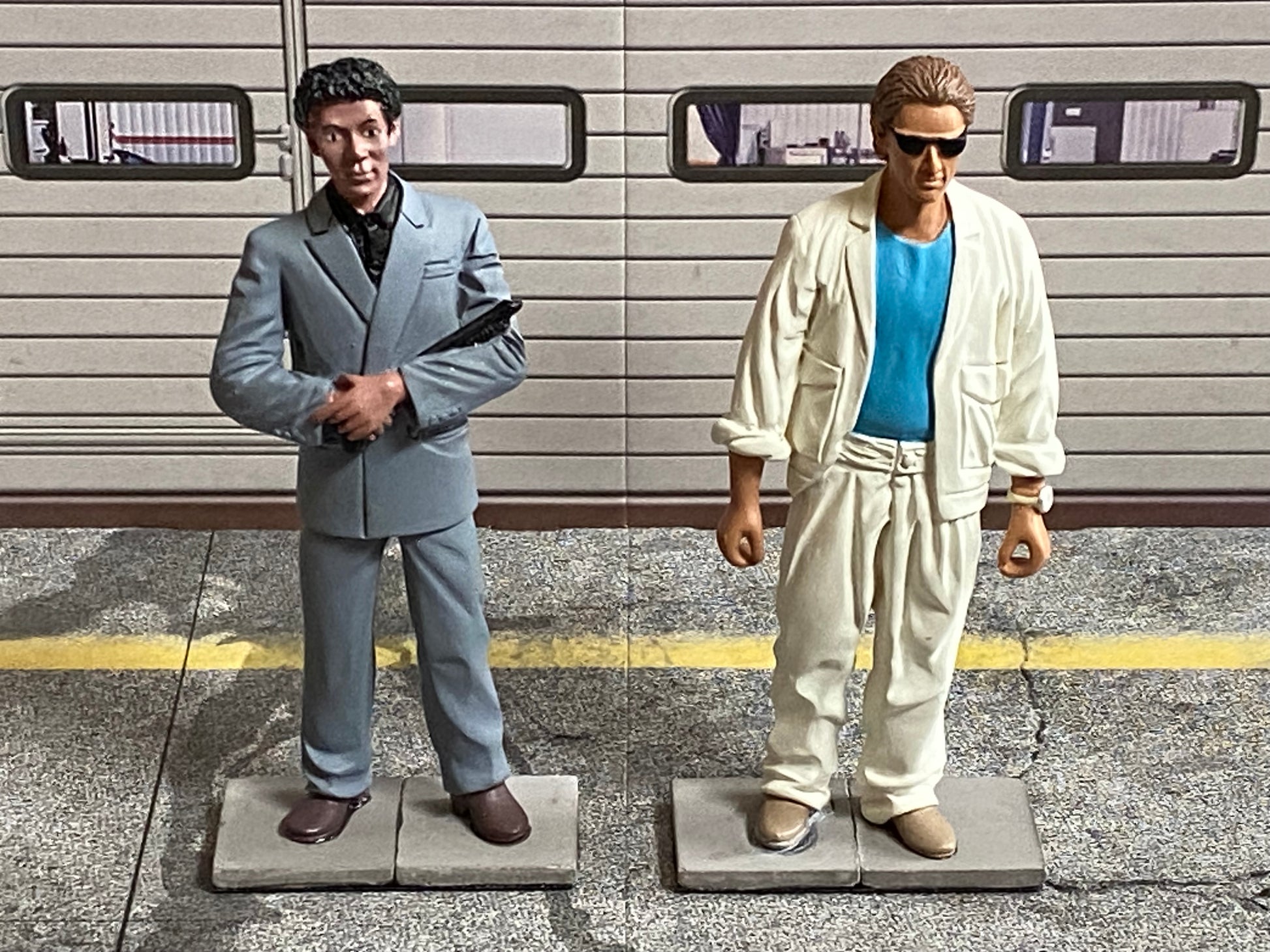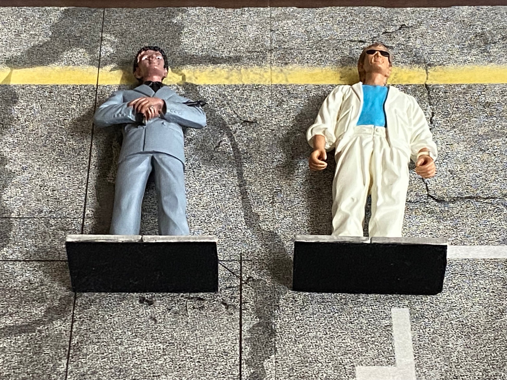 Zusätzlich erhalten Sie zwei Figuren von "Rico" und "Sonny", welche beide auf Steinplatten fest fixiert sind, auf deren Unterseiten schwarzes Filzmaterial befestigt wurde.