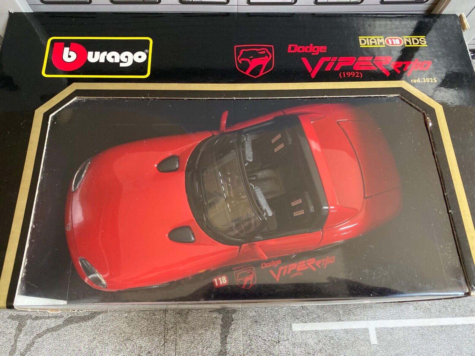 This is a rare 1:18 version in red/yellow of the Dodge Viper RT/10 from Bburago and comes in the original box (box have storage damages)!