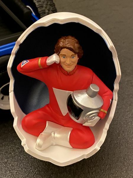 Das Jeep-Modell ist neu (Hersteller Greenlight, die OVP hat leichte Lagerschäden) und das "Raum-Ei"/Mork-Figur ist mit Sound ausgestattet. Es werden für den Betrieb zwei LR44-Knopfzellen benötigt und dann können anhand des an der Seite angebrachten Knopfes folgende Sätze (auf Englisch) abgerufen werden:
