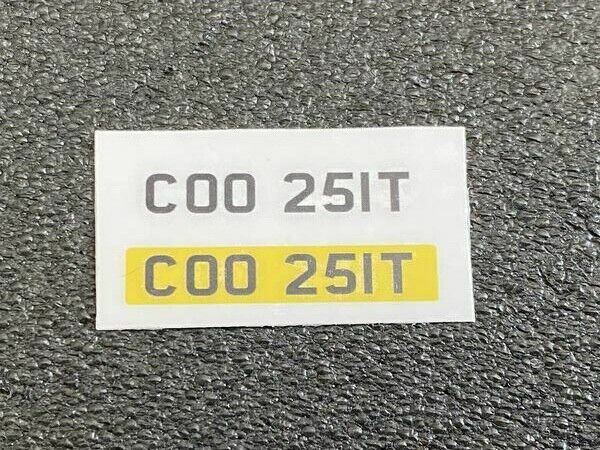 Die Kennzeichen (Version "A" ohne "Rahmen") sind aus selbstklebender und farbiger Folie hergestellt und müssen noch ausgeschnitten werden.