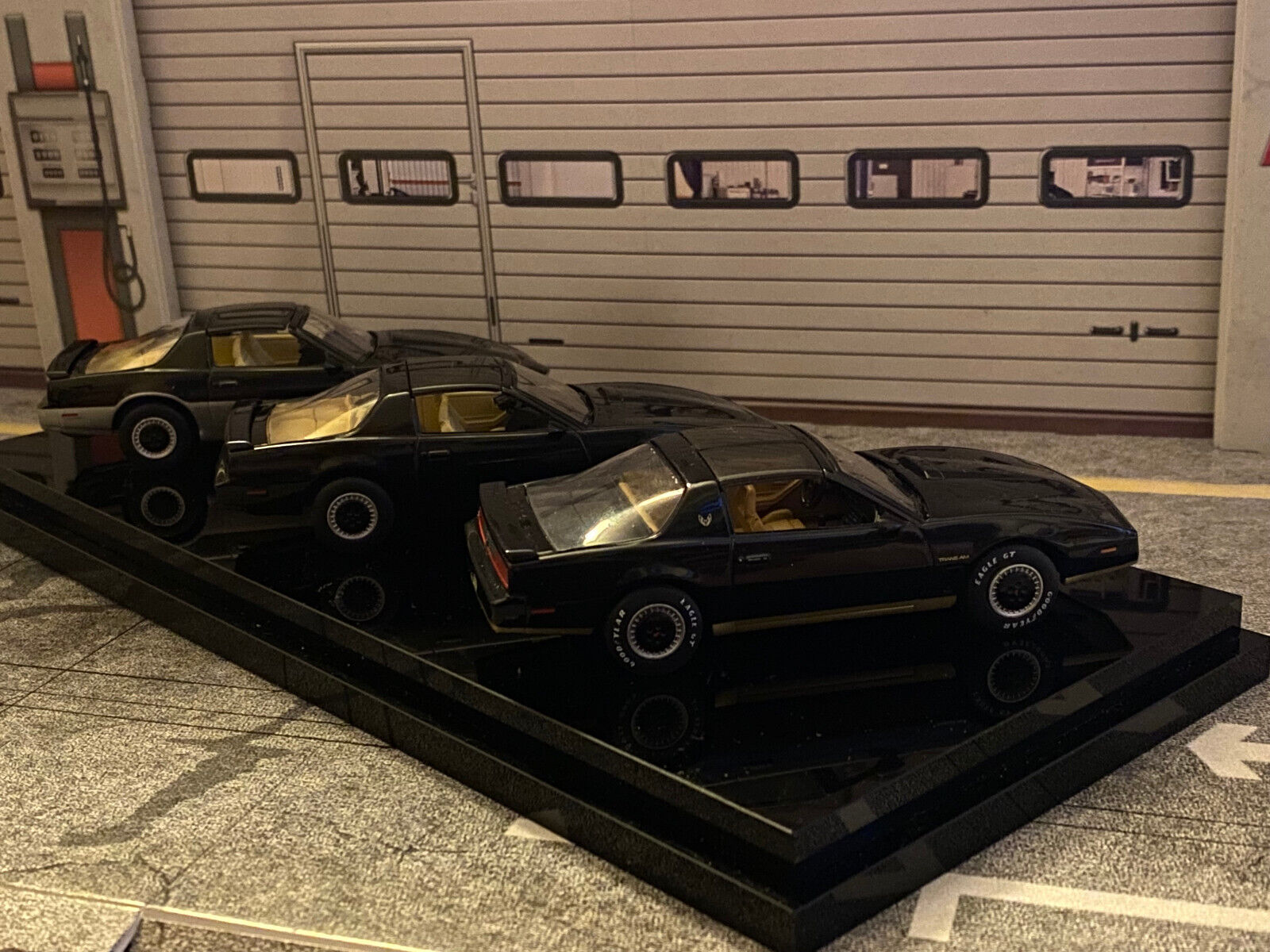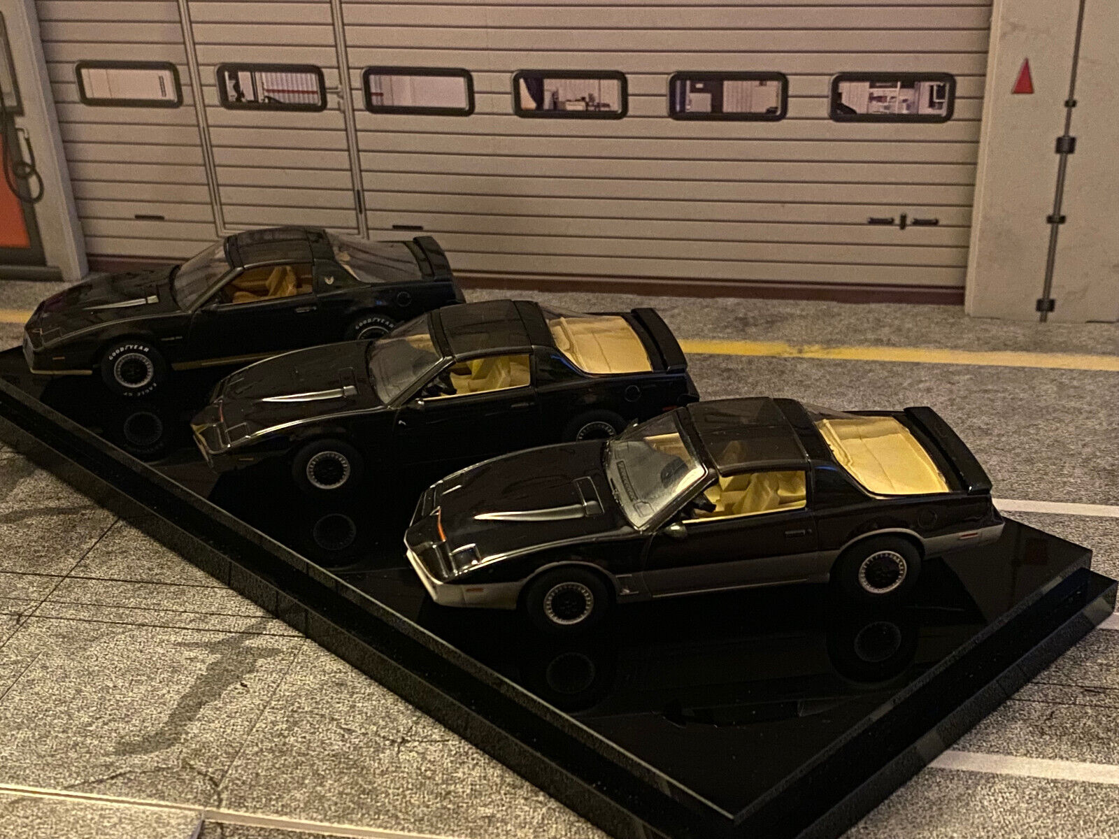 Michael Long´s Pontiac Firebird aus dem Pilotfilm zur Serie (Eigenbau/Umbau), sowie den beiden weiteren Serienmodellen K.I.T.T. und K.A.R.R.
