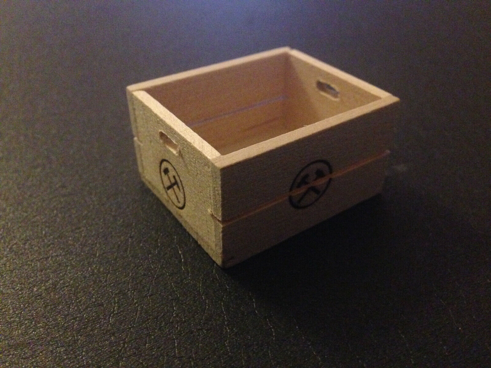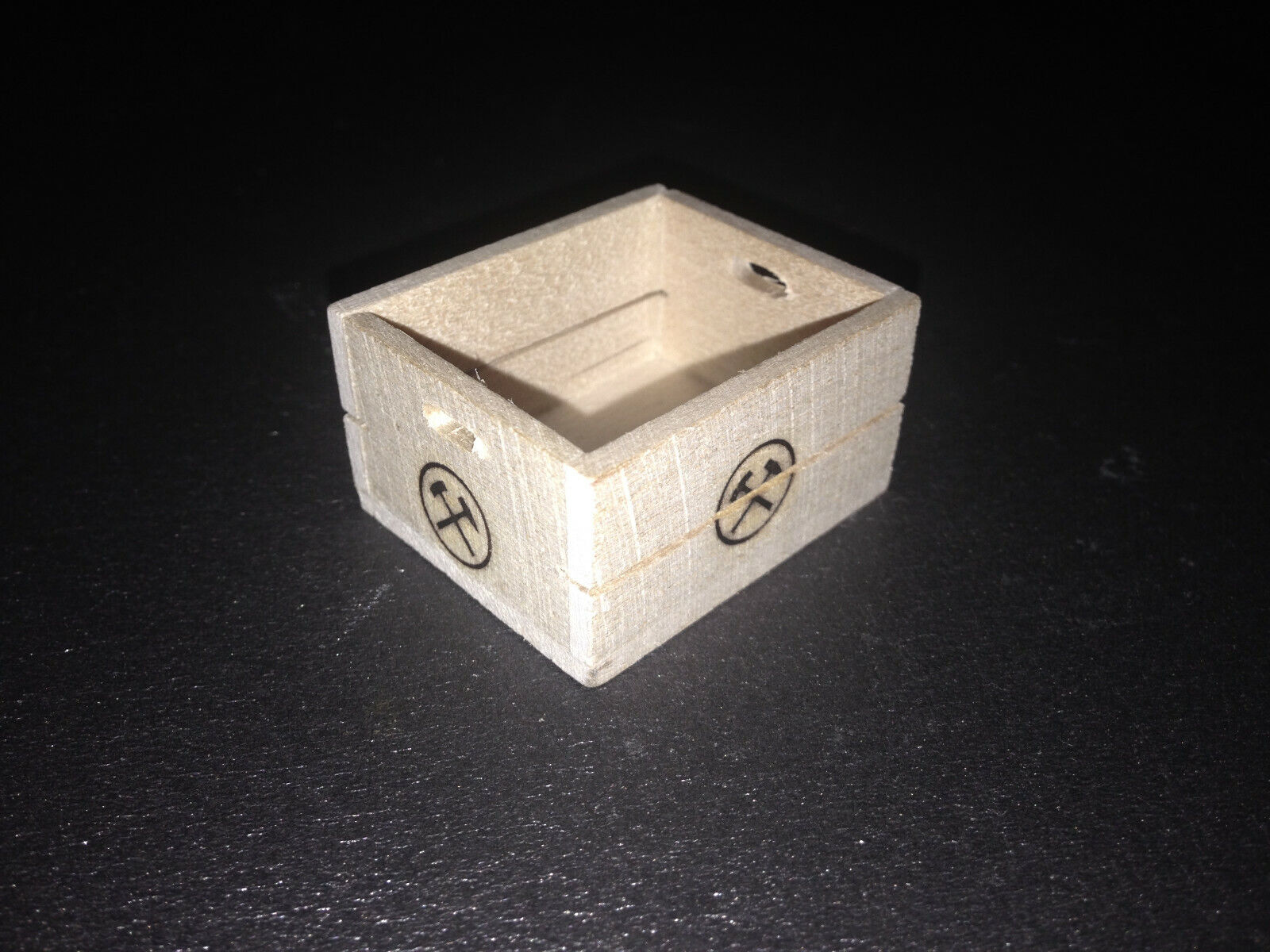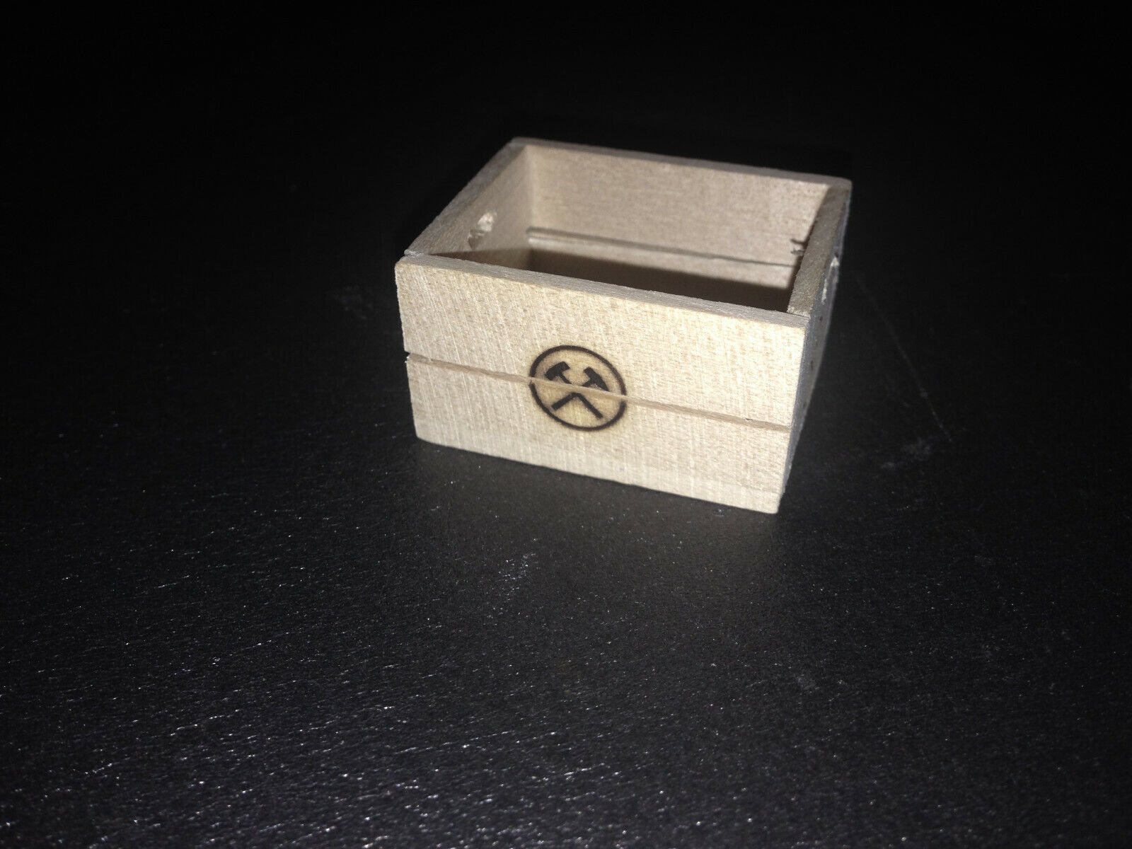 Kohlenkiste Holz mit Brandzeichen als Ladegut für Lkw 1:12 Diorama Puppenhaus