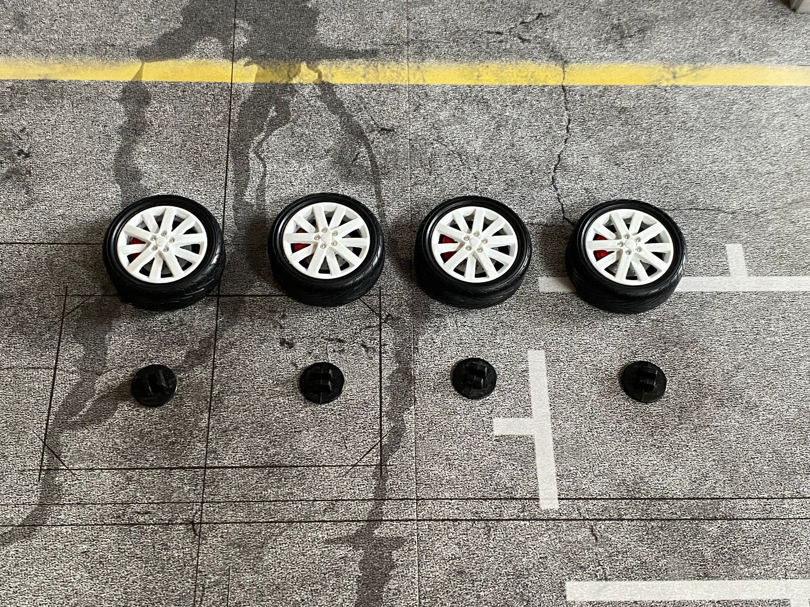 Kompletträder drehbar Felgen Räder Reifen Tuning Diorama Umbau 1:18