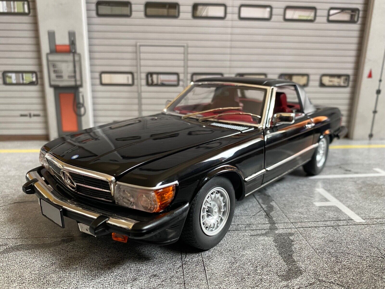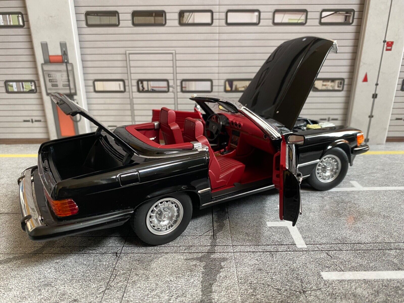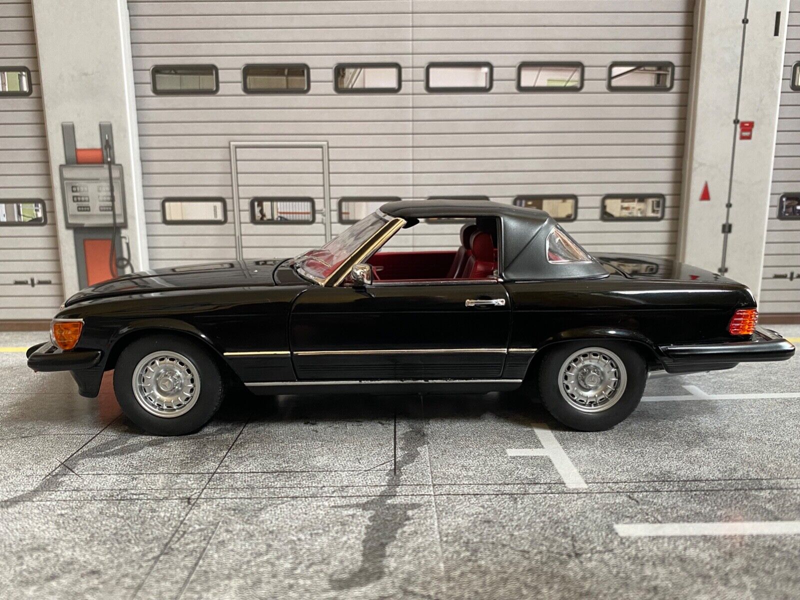 Mercedes Benz 300 SL 450 Schwarz R107 Umbau US-Version Barock Fuchs Felgen 1:18