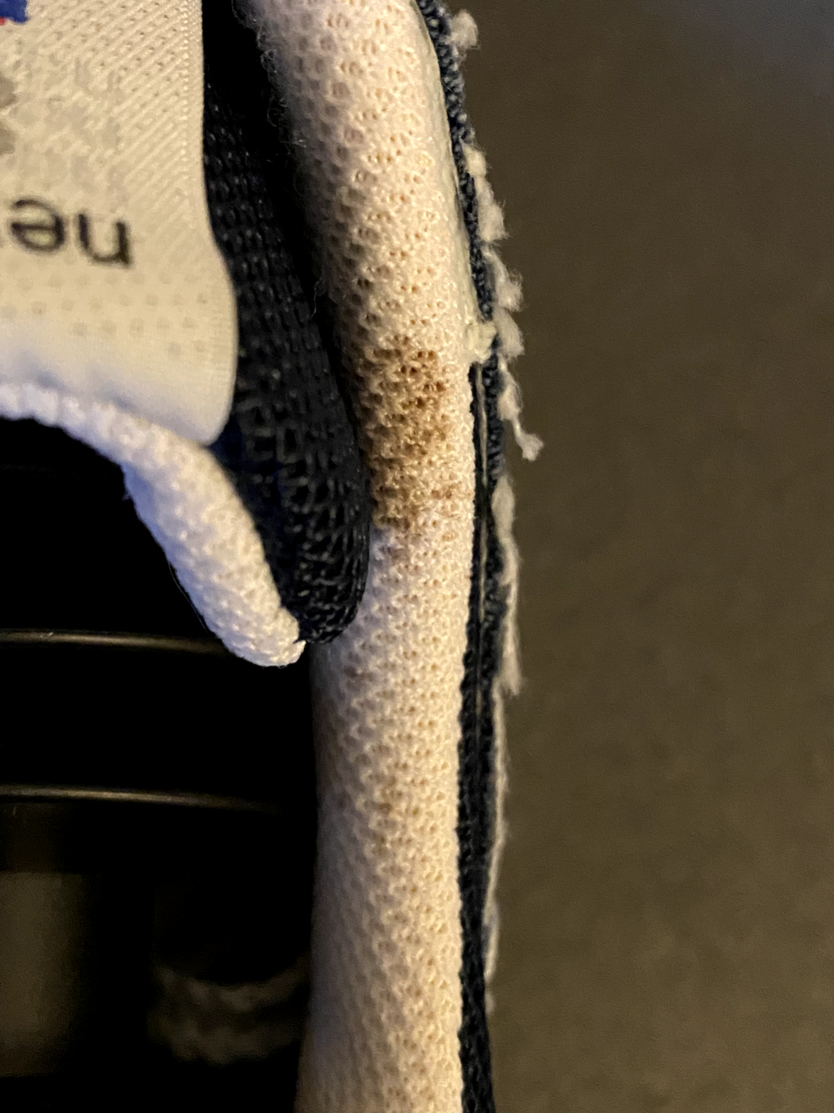 Bitte beachten Sie, dass der rechte Schuh an der Aussenseite im weißen Futter kleine bräunliche Flecken hat (siehe Bild 8), sowie sonstige altersbedingte Lagerspuren aufweisen kann.