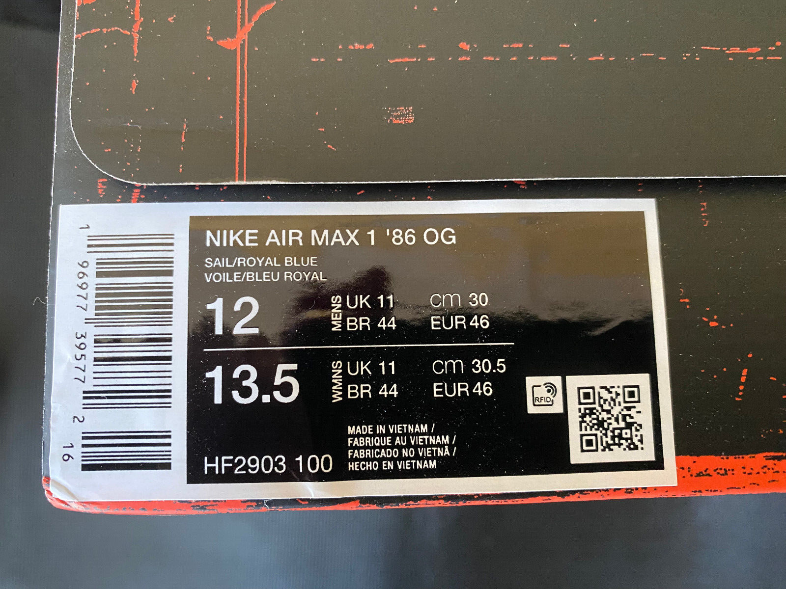 Nike Air Max 1 `86 OG BIG BUBBLE HF2903 100 AIR MAX DAY 2024 US 12 UK 11 EUR 46