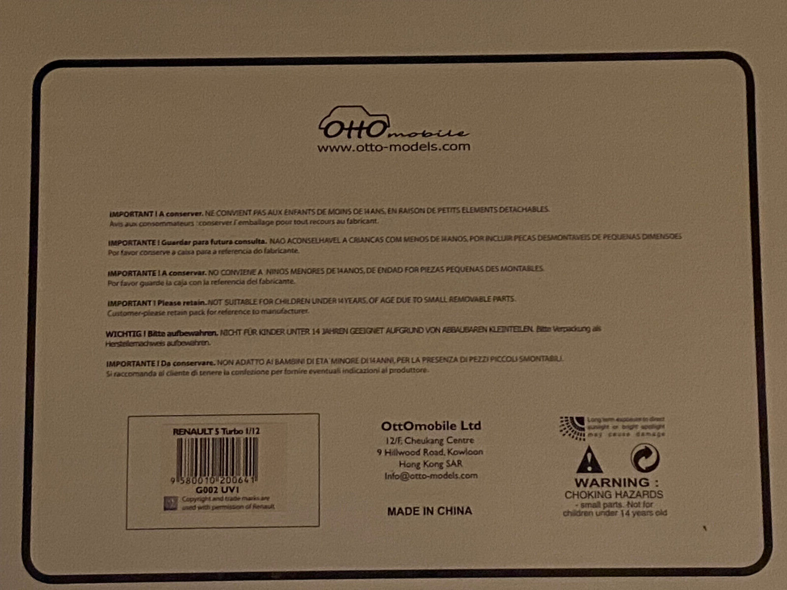 Renault 5 Turbo Granatrot Rouge Grenade Ottomobile G002 Otto in OVP 1:12