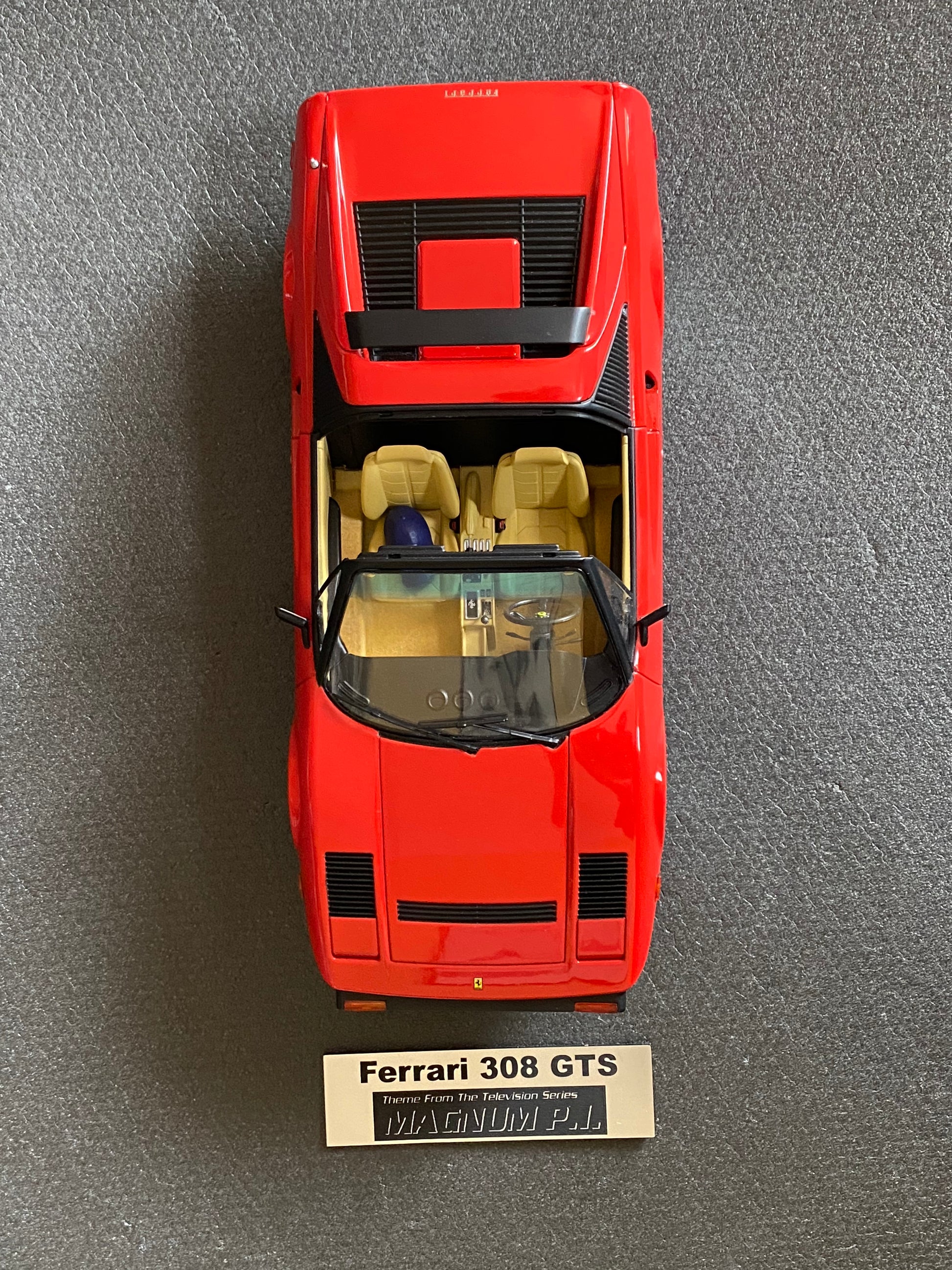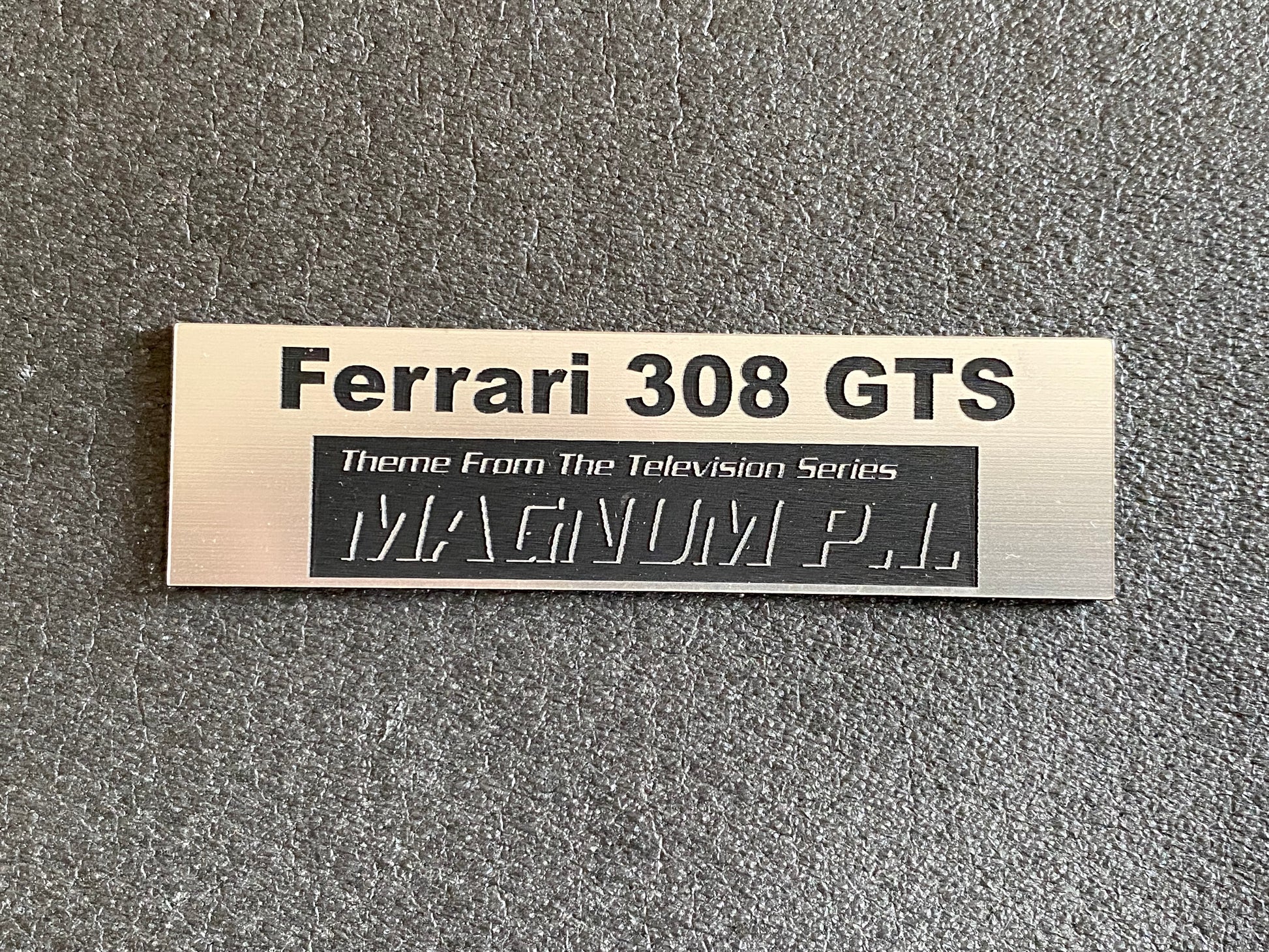 Schild Ferrari 308 GTS Magnum P.I. geprägt und selbstklebend für 1:18 Vitrine