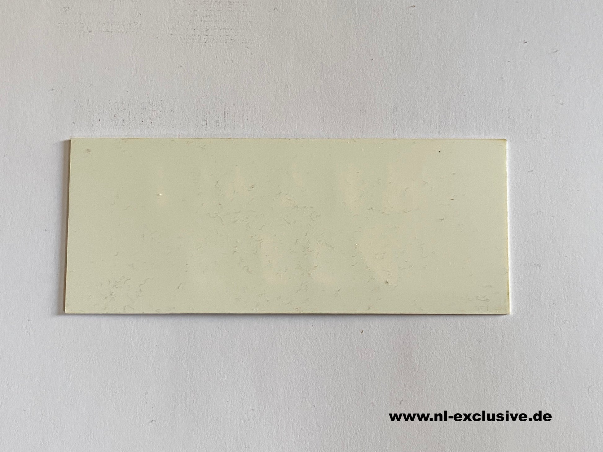 Das Schild ist aus Kunststoff gefertigt und auf der Rückseite mit Doppelklebeband versehen, somit kann es einfach auf der Sockelplatte, oder Rückwand der Vitrine des Modells befestigt werden.