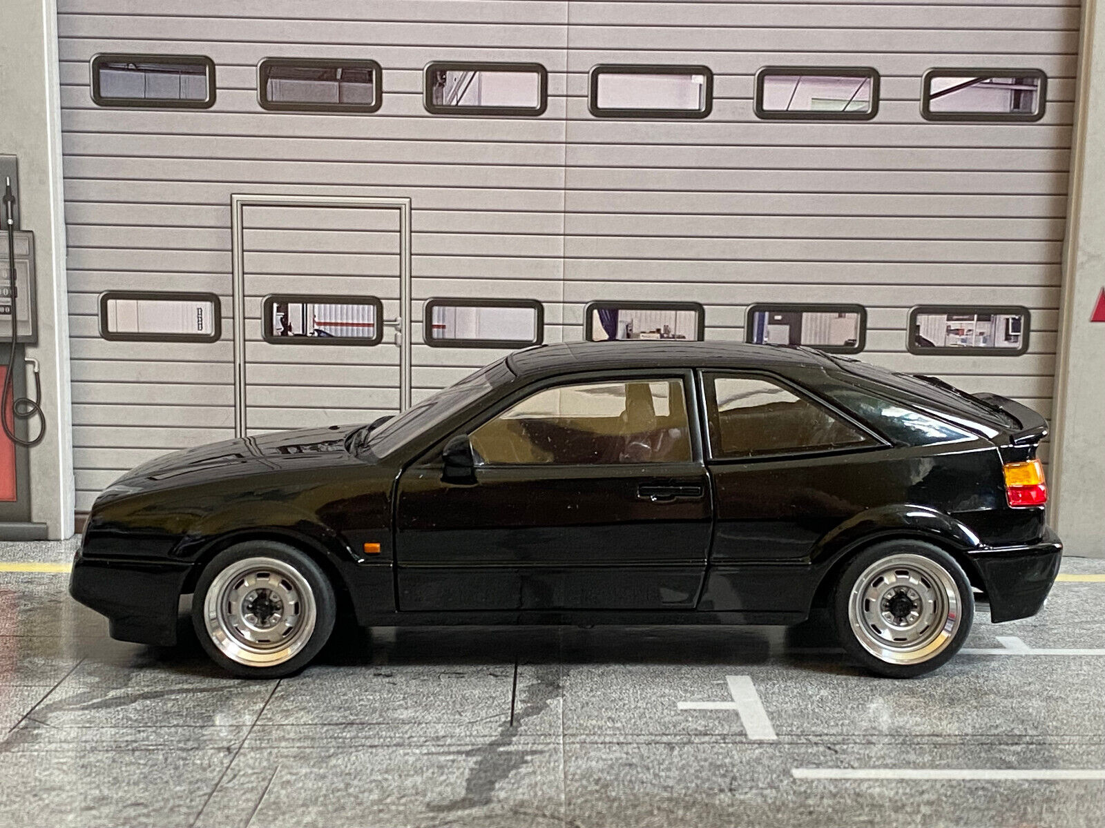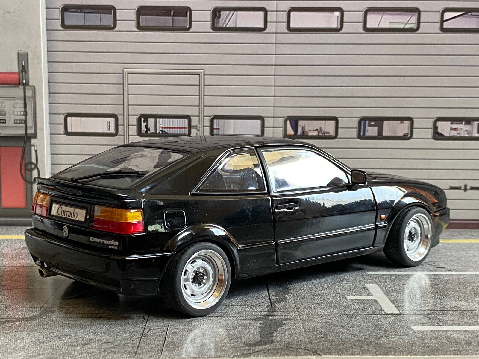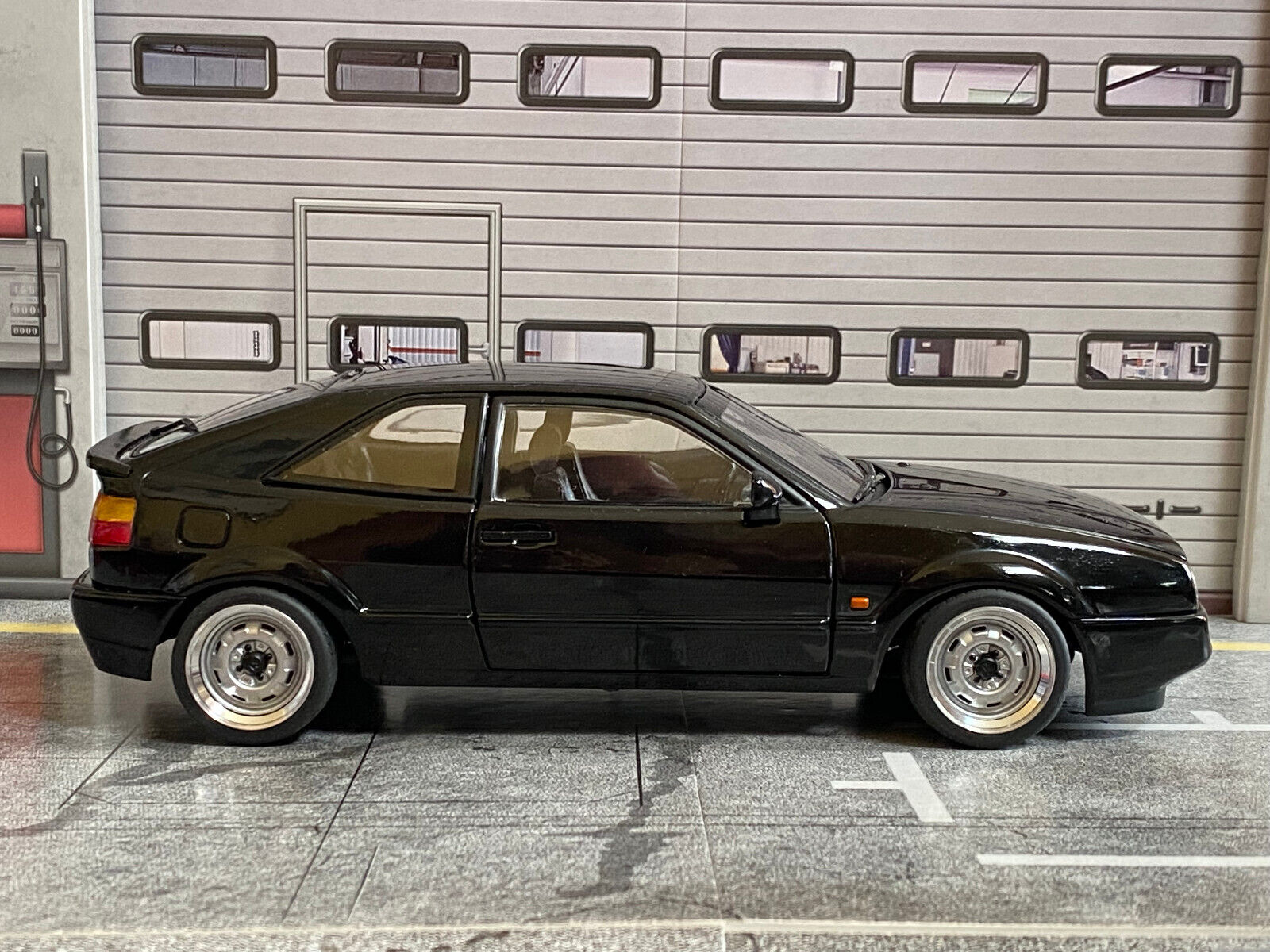 VW Corrado VR6 schwarz mit Stahlfelgen Räder dreh- u.lenkbar Tuning Diorama 1:18